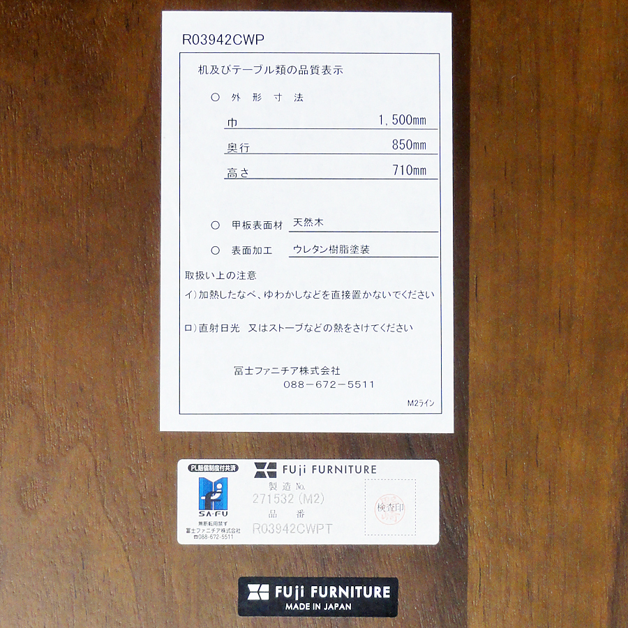 FUJI FURNITURE 冨士ファニチア 【Koti】 R03942CWP ダイニングテーブル W1500 ウォールナット材 ウレタン塗装 富士 ファニチャー 中古品